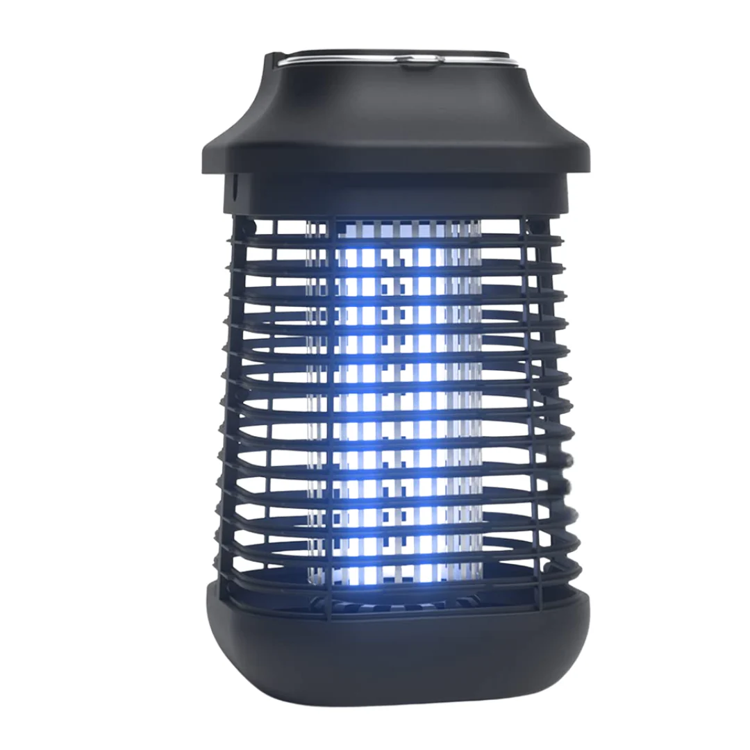 • High-voltage grid: 4200 V grid activates when insects contact the wires.