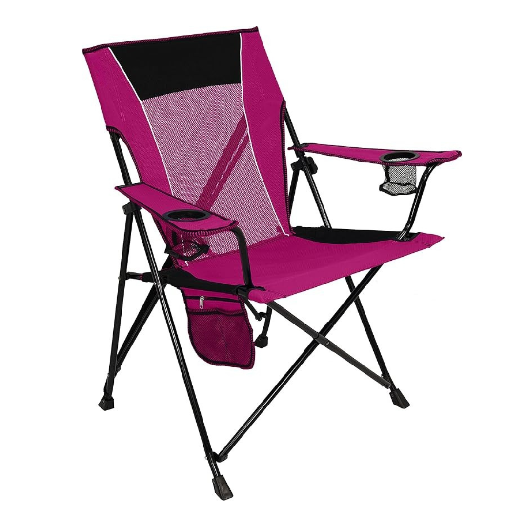 The chair’s locking system engages with a simple push and pull, making a stable base without tools or complex adjustments. Its steel frame measures 26 × 23.5 × 37 in, balancing structure and portability. Two integrated cup holders and a zippered organizer keep small essentials accessible. The material dries quickly after exposure to dew or light rain, making it suitable for variable outdoor conditions.