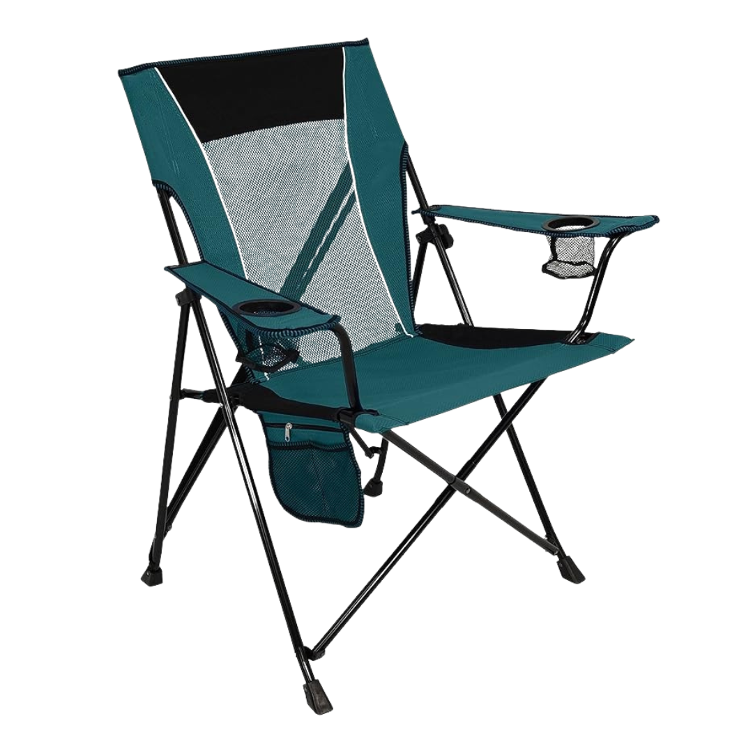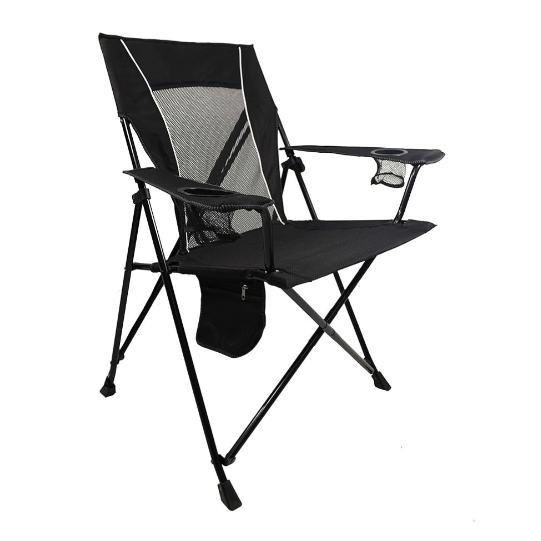 Designed for stability and comfort, this dual-lock portable camping chair features a frame that locks firmly in both open and closed positions. The mechanism prevents shifting during use and simplifies packing after events. Its diamond ripstop polyester seat resists stretching, while the mesh back promotes airflow in warm weather. With a 300 lb capacity, it provides reliable seating for outdoor activities such as camping, tailgating, or watching games.
