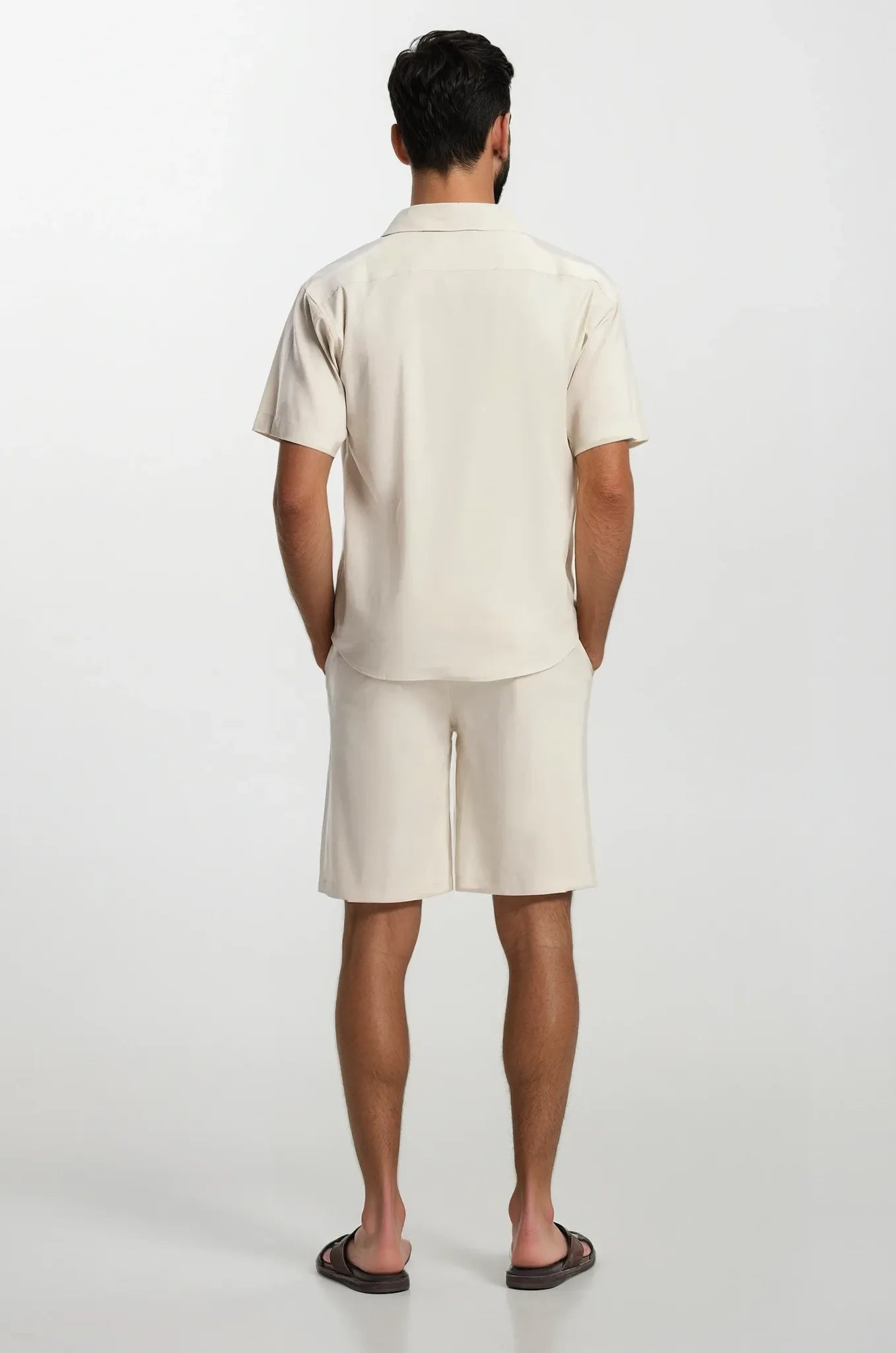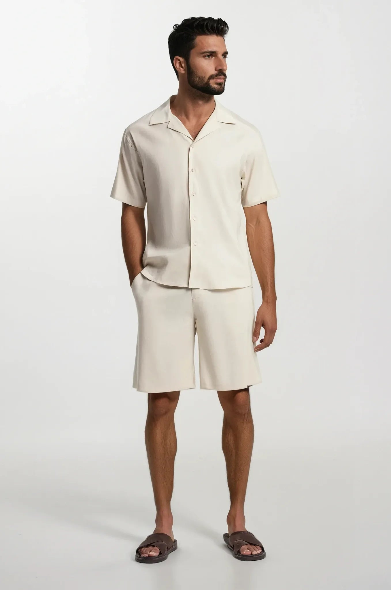 Update your summer wardrobe with these vanilla shorts. Their relaxed shape and plain style make them a simple choice for warm days.